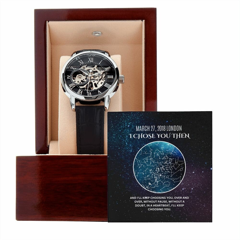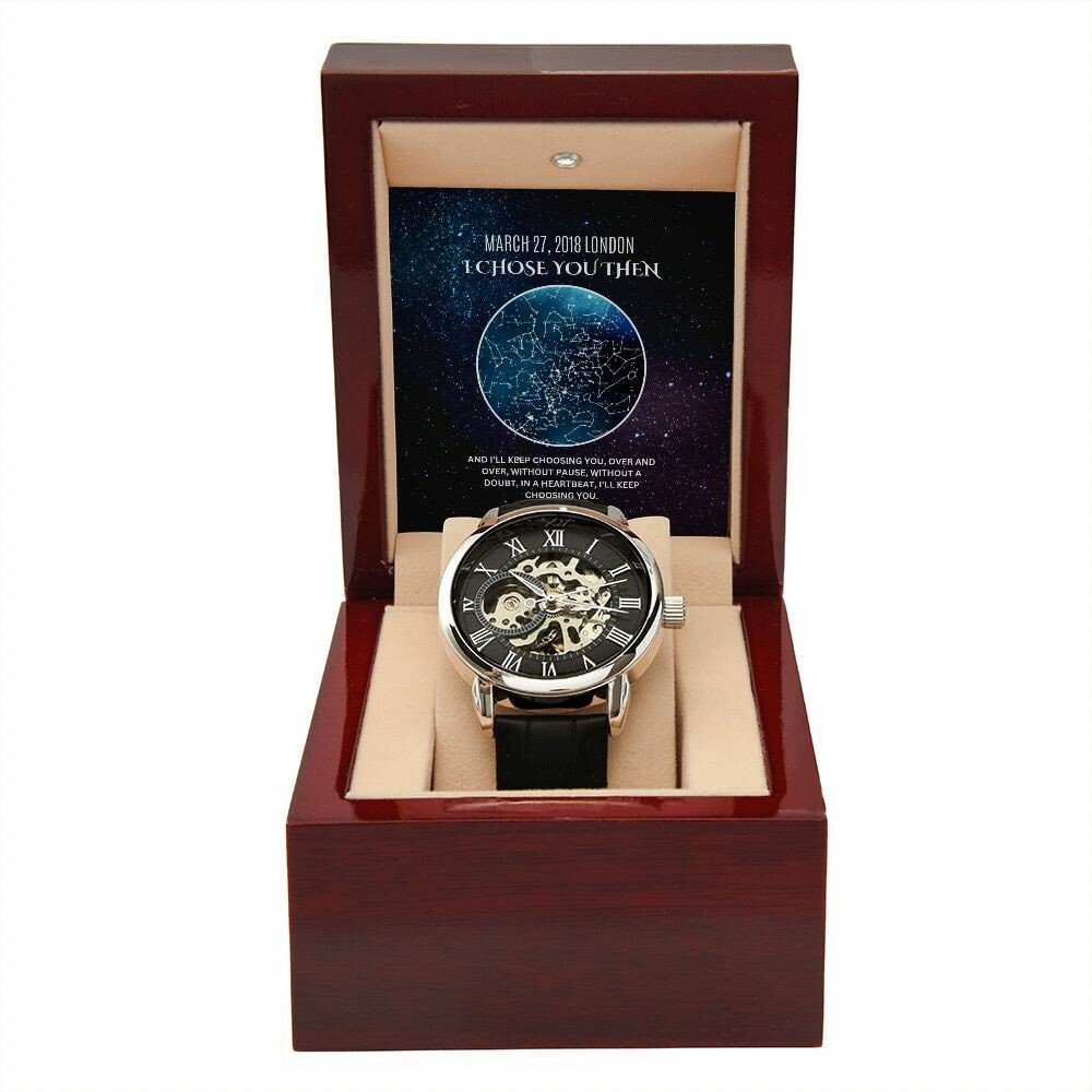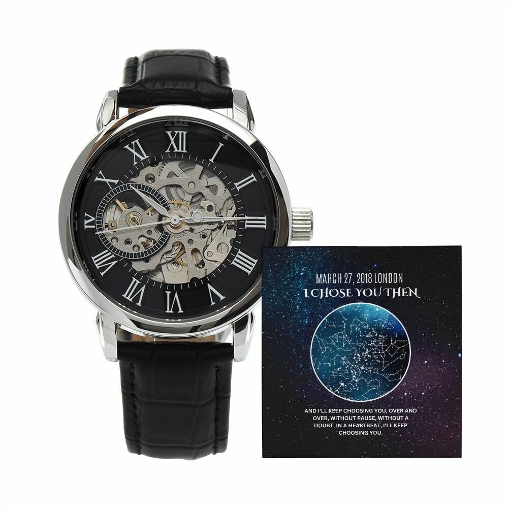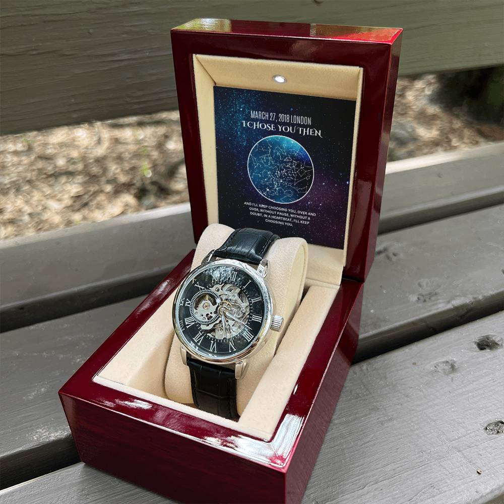 Gift for Men, Men's Wrist Watch, Personalized Anniversary Gift For Him, Automatic Openwork Watch For Husband, Partner and Boyfriend