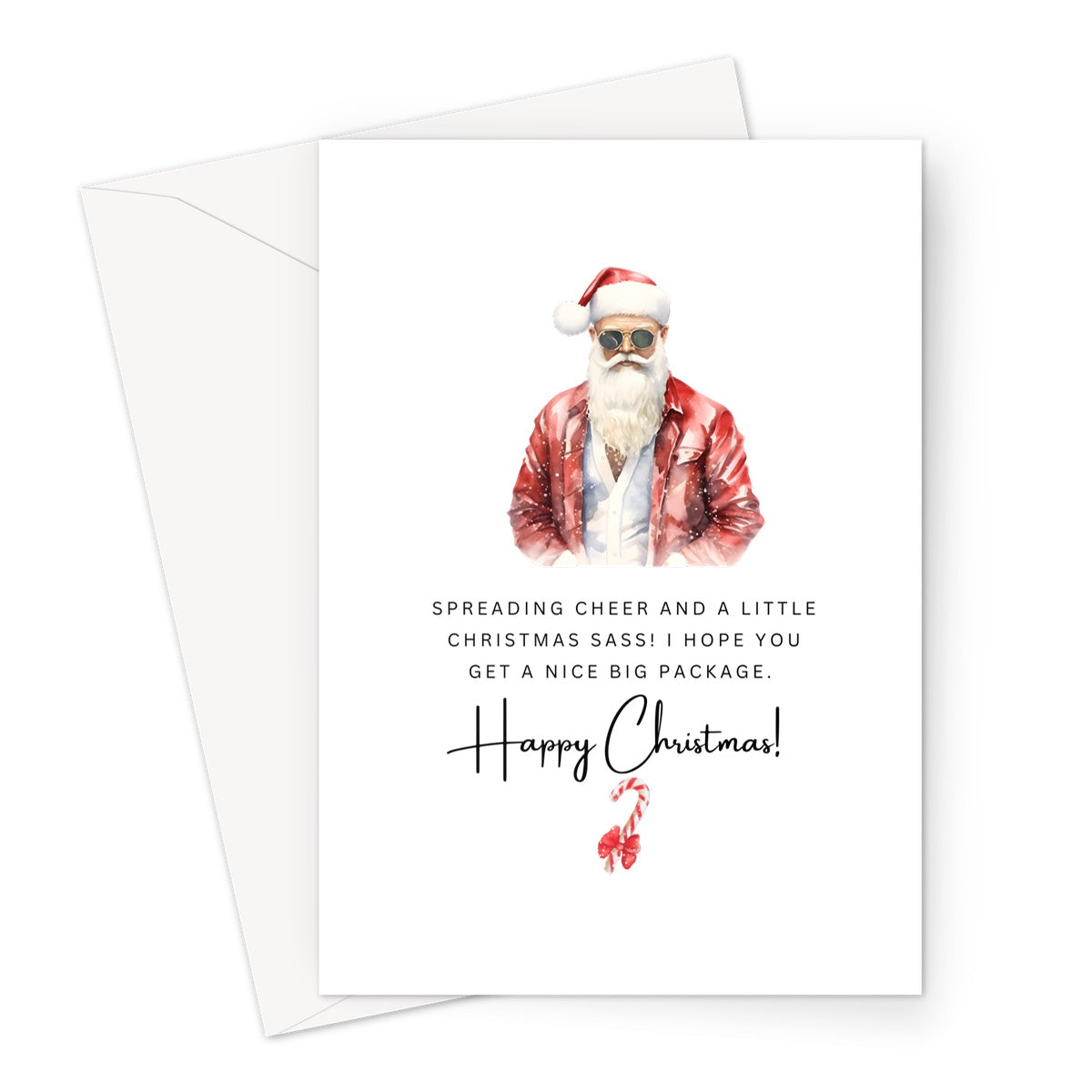 🎅 Our distinctive card takes the iconic Santa Claus and gives him a playful, sassy makeover that's bound to tickle your funny bone. Picture Santa himself striking a pose more suited for the runway than the chimney. With a sly wink and a twinkle in his eye, this Santa is on a mission to infuse the season with extra joy and merriment!
