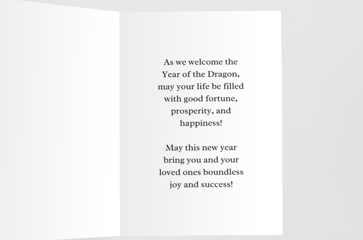 Order your Lunar New Year greeting card today and let the Year of the Dragon begin with a flourish of elegance and heartfelt wishes.