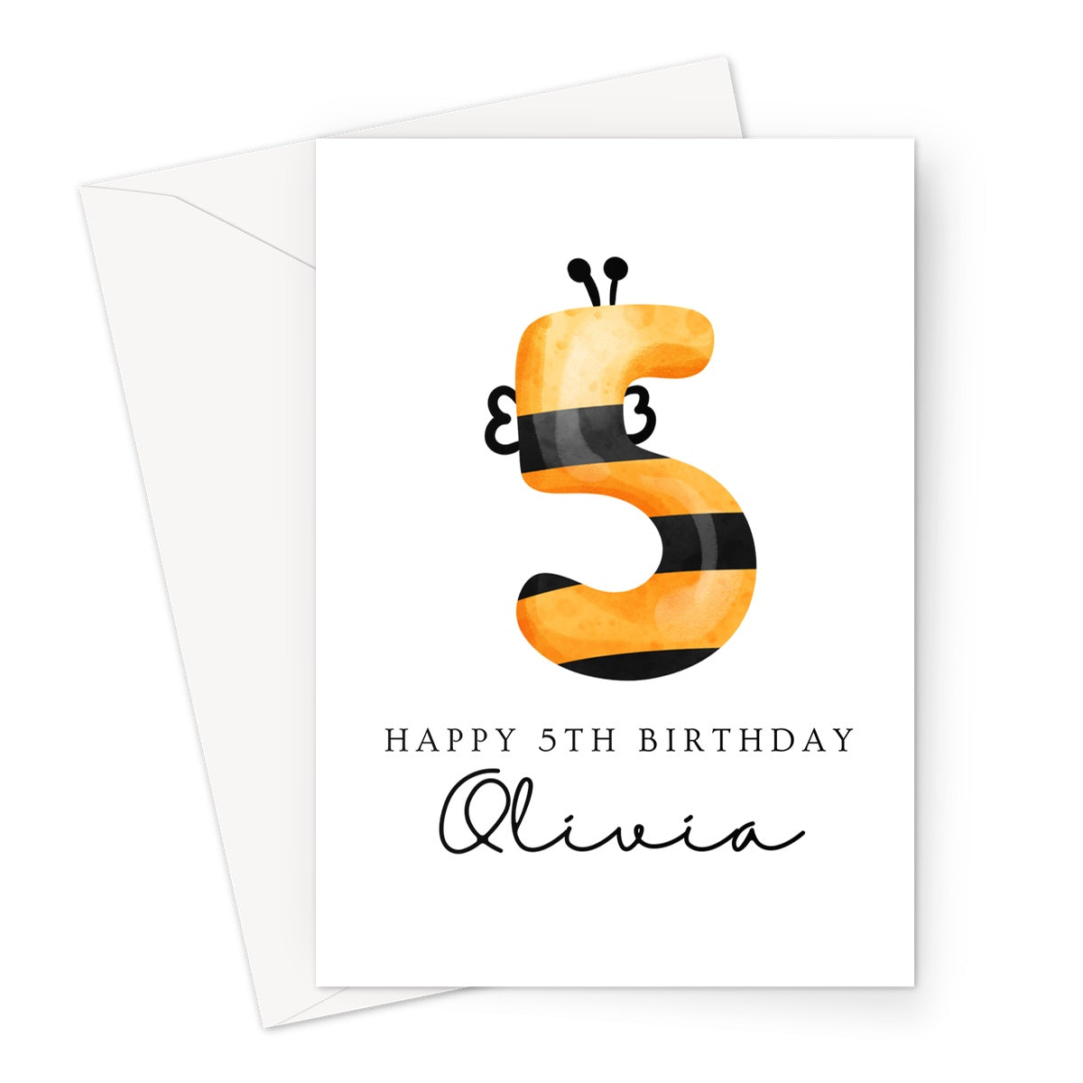 Infuse your little one's momentous fifth birthday with the vibrant energy of celebration through our personalized Bee Birthday Card! Drawing inspiration from the boundless thrill of exploration and the enchanting realm of bees, this dynamic card is tailored to etch every birthday into memory.