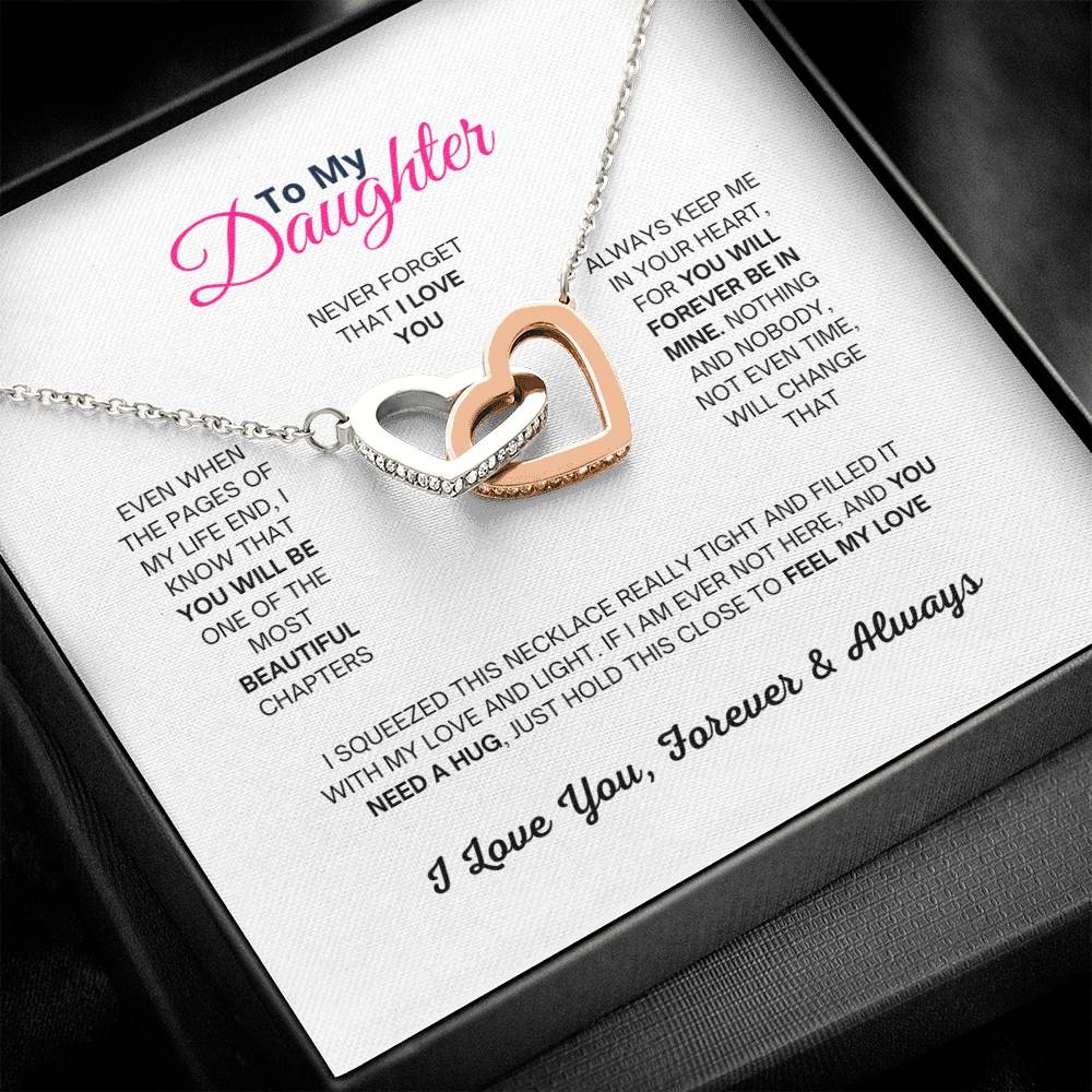 Gift your daughter for Christmas and Birthday this beautiful pendant necklace with interlocking hearts adorned with sparkling CZ crystals. Crafted from high-quality stainless steel and available in rose gold or 18k yellow gold finishes, it's a stunning piece that she'll love.